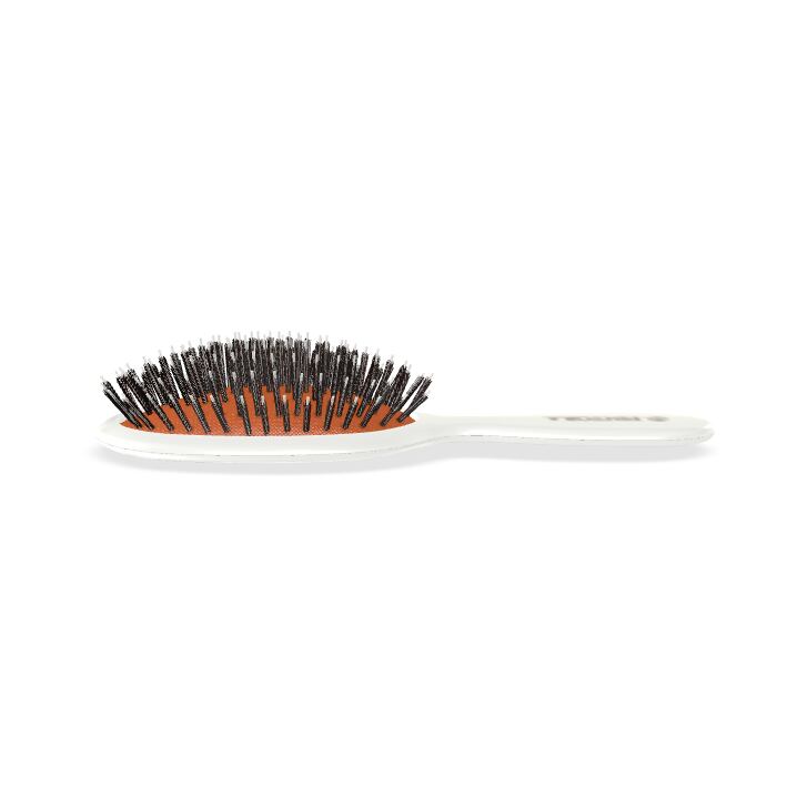 髪を綺麗に大事に美しくキープされる女性の必需品です。ナイロンと豚毛の混合毛が、滑りを良くし、髪の詰まっている部分もするりと梳いていきます。持ちやすく、またカバンにも収まるサイズで、常に女性の味方です。デジタルプリントによって、ヘアブラシのボディ部分にあなたのデザインを印刷いたします。プラスチックの素材にしっかりとインクを入れ、傷に強く色落ちや剥がれることのない半永久プリントを可能にしています。誰でも喜んでいただける素敵なオリジナルギフトになるでしょう。