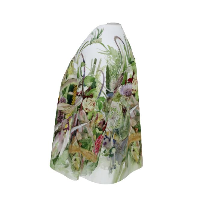 「極楽鳥花」の水彩画を元に制作するオーダーメイドのブラウスです。